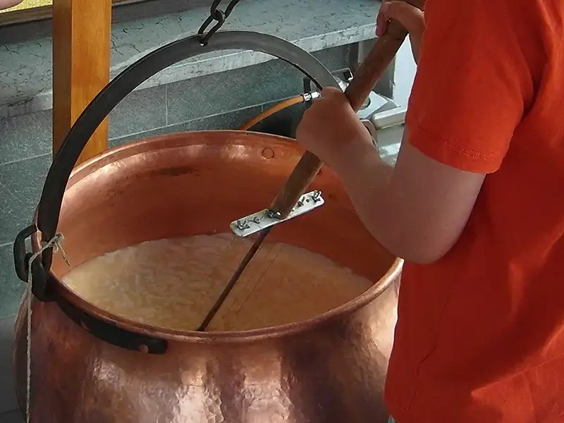 Wir bieten Ihnen im Sommer ein "Schaukäsen im Kupferkessel" zu bestimmten Terminen an. Wir freuen uns auf Ihre Teilnahme.